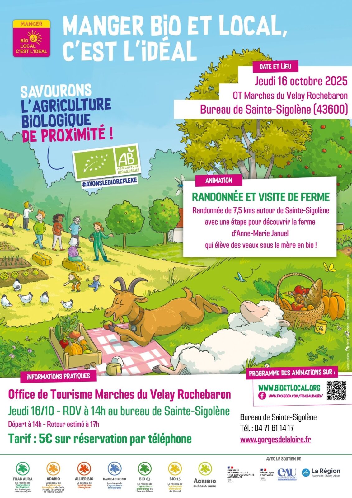 Jeudi 16 octobre, randonnée de 7,5 kms autour de Ste Sigolène avec une étape pour découvrir la ferme d’Anne-Marie Januel, qui élève des veaux sous la mère en bio. Rdv à 14h devant l’office de tourisme Marches du Velay Rochebaron, bureau de Ste Sigolène. Réservation par téléphone au 04 71 61 14 17. Places limitées, 5€ par personne.