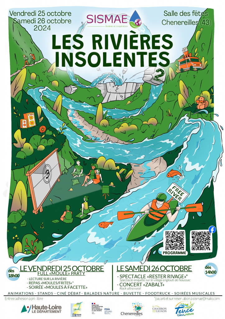 Rendez-vous, à Chenereilles (43) le vendredi 25 et samedi 26 octobre pour découvrir un beau programme autour des rivières. Évènement organisé par SISMAE.