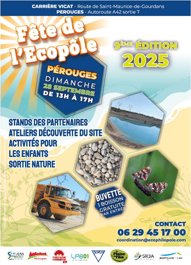 Comme chaque année, les communes de Pérouges et de Saint Jean de Niost, l’entreprise Granulats Vicat et France Nature Environnement Ain ont le plaisir de vous inviter à la 9ème édition de la fête de l’écopôle Pérouges Plaine de l’Ain, qui aura lieu le dimanche 28 septembre 2025 de 13h à 17h sur la carrière Les Communaux à Pérouges.