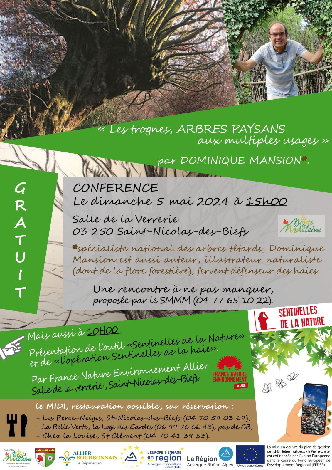 A l’initiative du Syndicat Mixte des Monts de la Madeleine (SMMM), FNE Allier fera une présentation du dispositif Sentinelles de la Nature et de l’action Sentinelles de la haie à 10 heures, à la salle de la Verrerie à Saint Nicolas des Biefs.