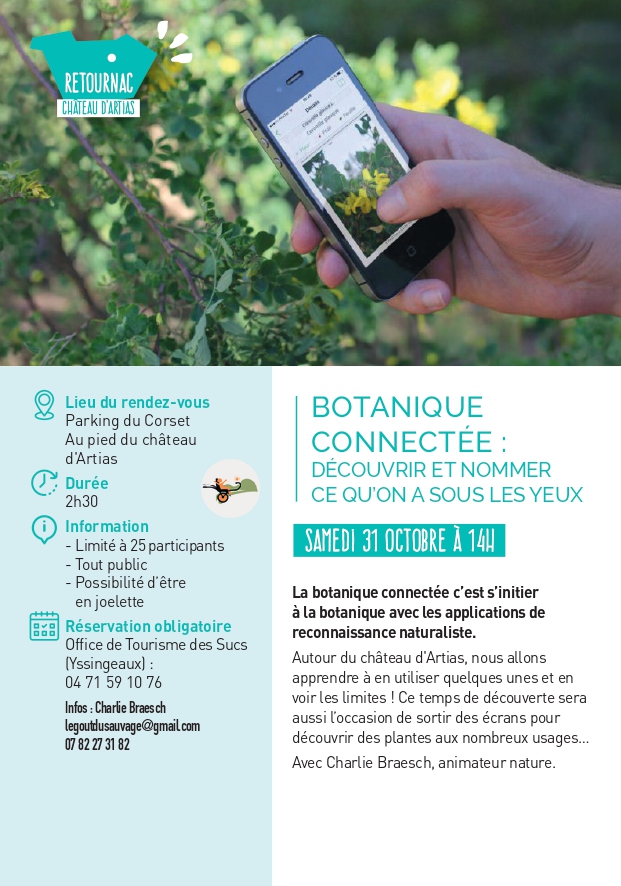 Autour du château d’Artias, nous allons apprendre à en utiliser quelques unes et en voir les limites ! Ce temps de découverte sera aussi l’occasion de sortir des écrans pour découvrir des plantes aux nombreux usages… Avec Charlie Braesch, animateur nature.
